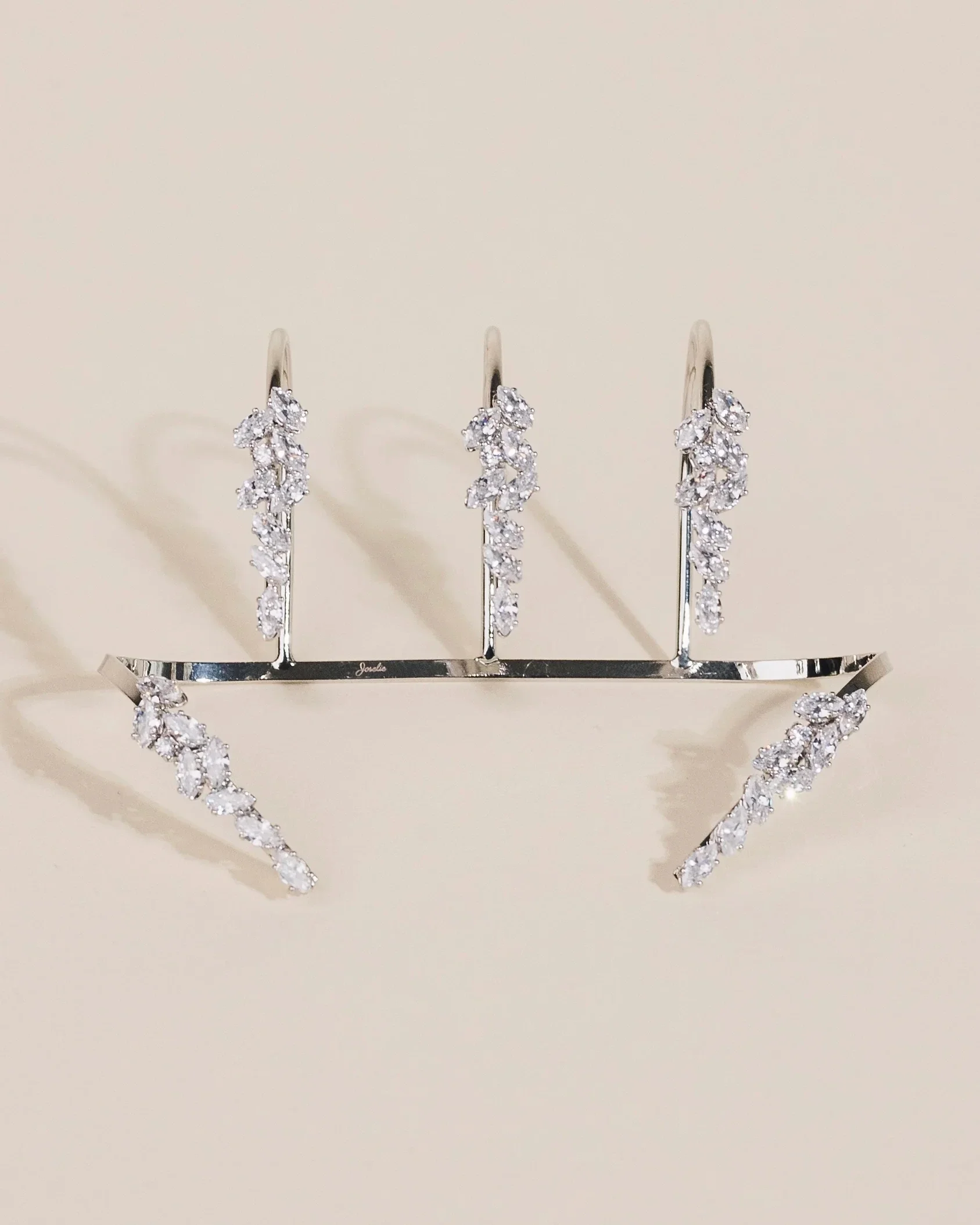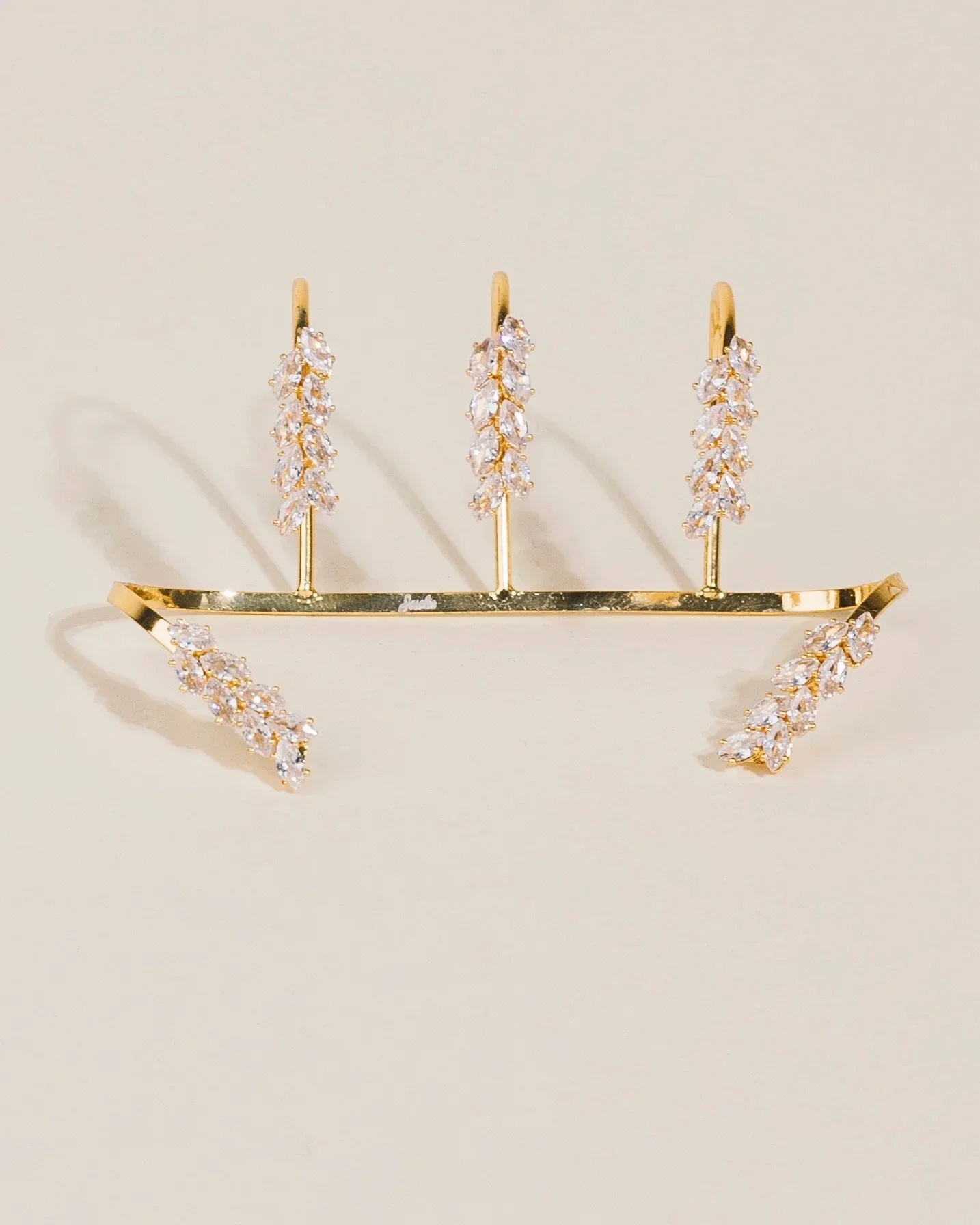 Delicate and dazzling, this leaf-shaped palm bracelet features shimmering rhinestones set in a copper bangle with a prong setting. Its nature-inspired design and trendy style make it a standout accessory, perfect for adding sparkle to both casual and special occasion looks. Lightweight and elegant, it wraps gracefully around the wrist for a refined yet modern finish.
