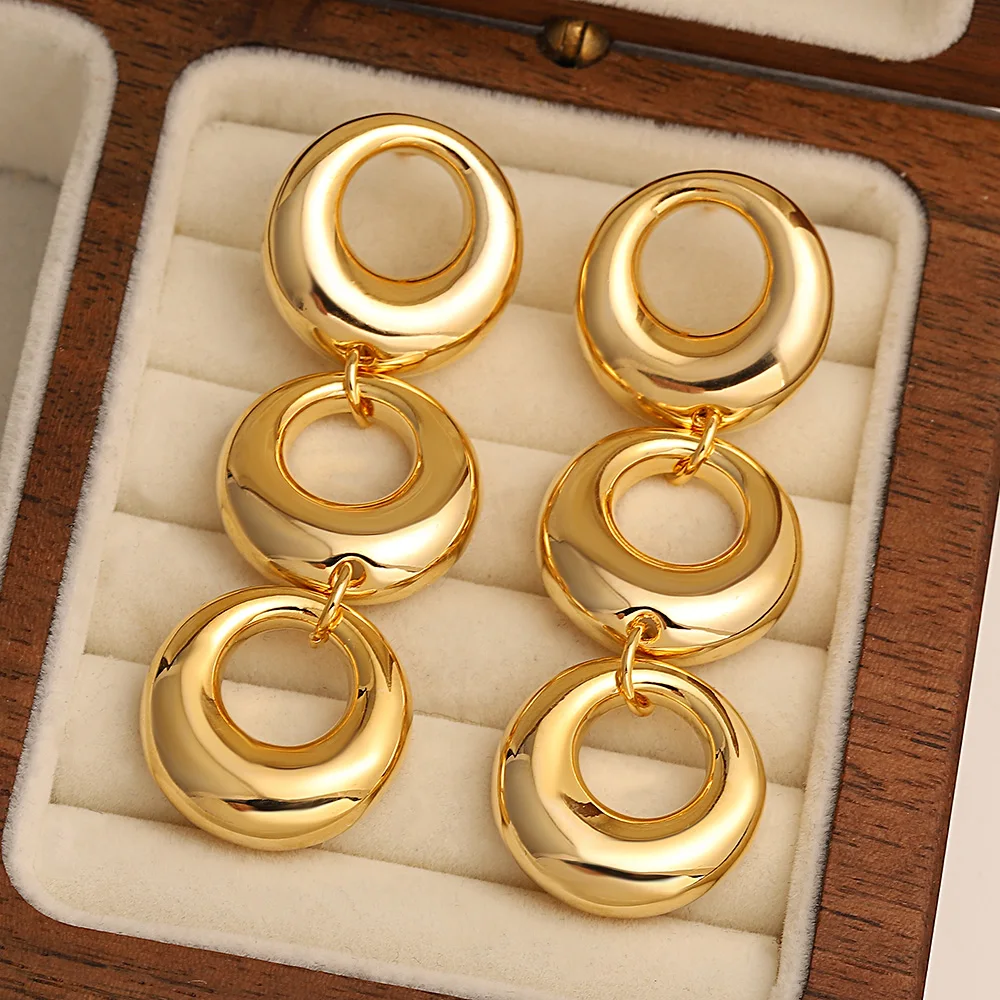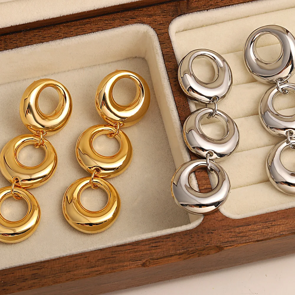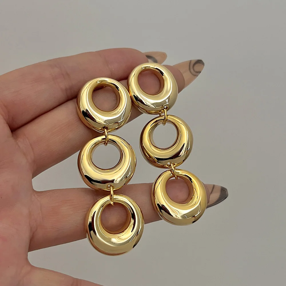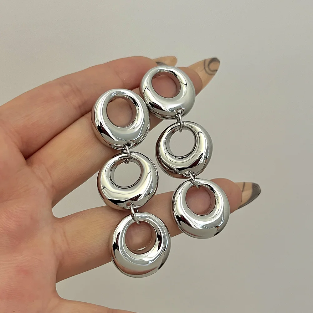 Add a touch of modern elegance with these multilayer hollow circle drop earrings.