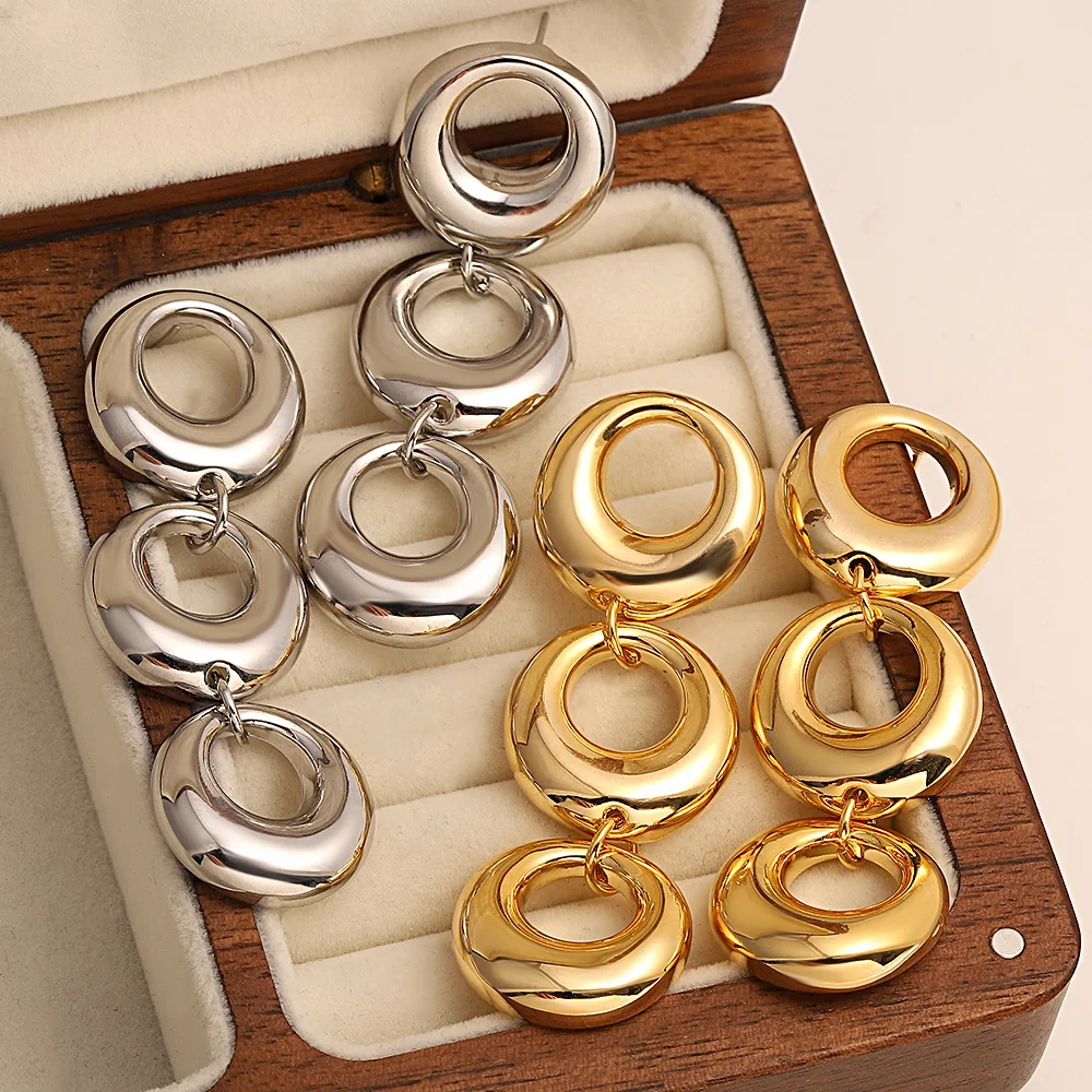 Available in both gold and silver tones, these lightweight, stainless steel, geometric earrings feature a chic layered design that moves beautifully with you. Perfect for weddings, parties, or elevating your everyday style, they’re a versatile must-have for any fashion-forward jewelry collection.