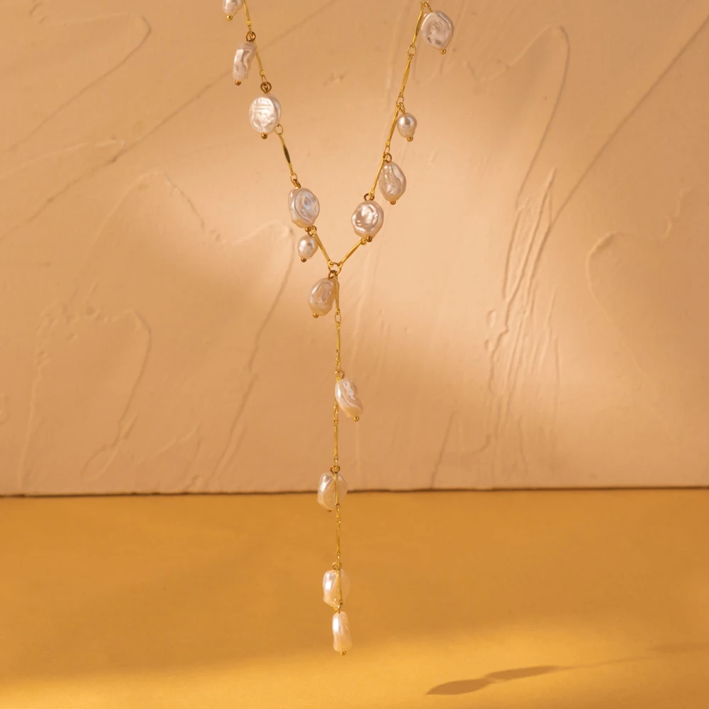 This irregular pearl pendant necklace brings a touch of vintage elegance to any look with its unique geometric shape and soft luster. Designed with a versatile slide-style pendant and crafted from zinc alloy, it's perfect for layering or wearing solo. Whether styled casually or dressed up for a special occasion, this piece adds effortless charm and individuality to your jewelry collection.