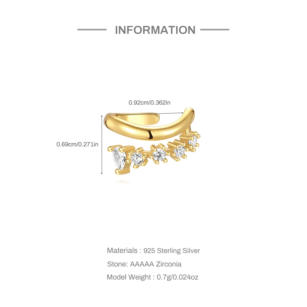 Add a touch of effortless elegance with this earcuff – no piercing required. Designed with sparkling AAAA-grade cubic zirconia and crafted from certified 925 sterling silver, this piece offers a modern twist on classic style. Its double-layer design hugs the ear for a bold yet refined look, perfect for parties, weddings, or daily glam.